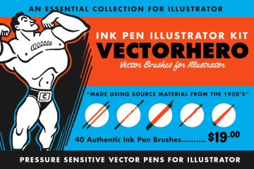 我们使用适用于 Illustrator 的 VectorHero 笔包重现了这个时代的感觉。我们是这样做的: