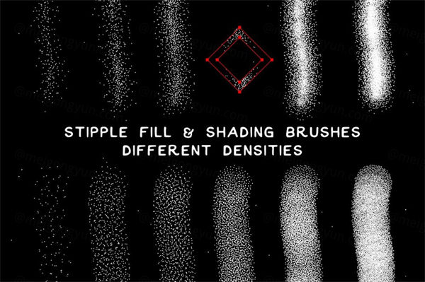 6 个具有不同密度的点画衰减画笔,以获得类似渐变的点画效果,可以根据您的形状剪裁,这通常用作阴影/着色技术。(适用于Ai和PS)