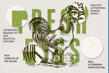 如果需要,LetterPress 一套 4 个画笔可用于额外的痛苦(只需将图层蒙版添加到所需的文件夹)