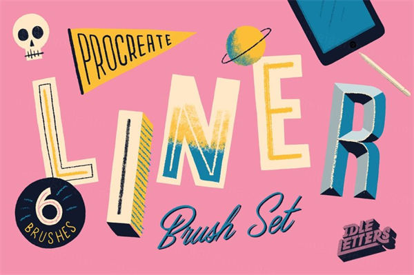 一段时间以来,我一直在使用和微调这组画笔。我将它用于我所做的大部分刻字工作。它由 6 个画笔组成,适用于一系列不同的输出,非常适合在 Procreate 中创建的各种插图和字体作品。