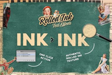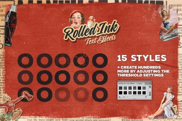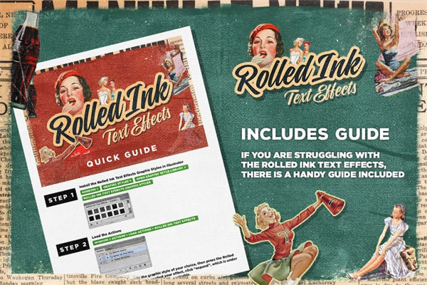 图穷联素材库 » 复古油墨印刷颗粒粗糙墨迹纹理文本文字效果矢量素材 Rolled Ink