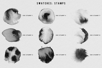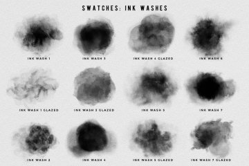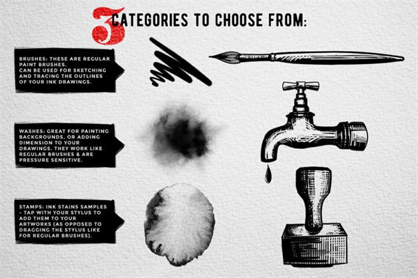 图穷联素材库 » 水彩画笔油墨墨水笔毛笔晕染墨渍素描笔刷 Procreate Ink b