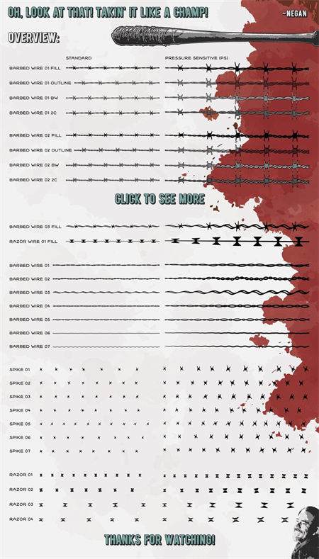 图穷联素材库 » 56款带刺铁丝网钢丝AI笔刷素材 Lucille - Barbed W