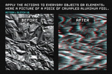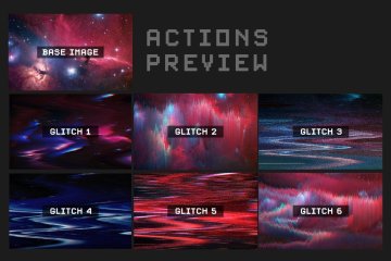 您将收到 1 个 .atn 文件,其中包含您可以直接添加到 Photoshop 动作集合中的 20 个动作。(在 Photoshop 中打开动作面板,在菜单中选择“加载动作”,只需找到动作集并单击它,它就会被添加到您的动作面板中。还包括两个 PNG 预览文件。要将动作应用到您的图片,在您的动作面板中打开名为“Entropy: glitch actions”的文件夹,选择您选择的动作,然后单击面板底部的小播放按钮。
