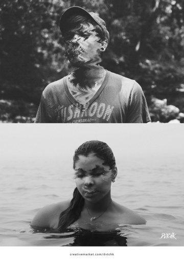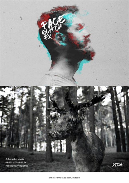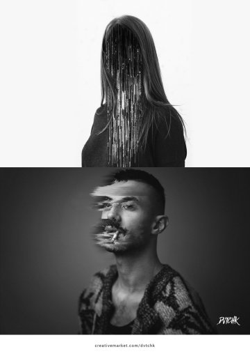 抽象人物面部扭曲故障艺术垃圾破坏污垢毛刺像素失真效果 Face Gli