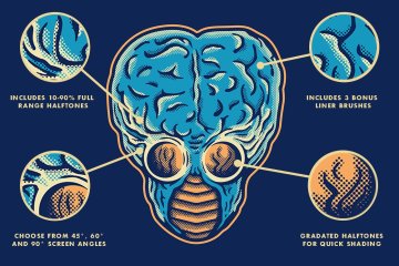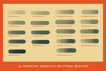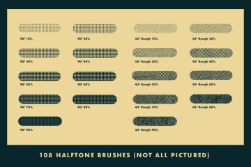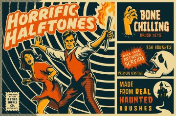 在半色调包装的情况下,一种尺寸并不适合所有尺寸。这就是为什么我们的 Horrific Halftones Photoshop 画笔包带有数量惊人的半色调(但井井有条,因此您不会失去理智)。
