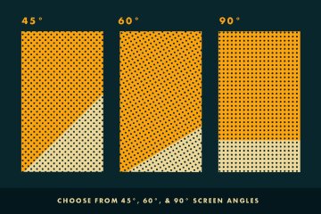 所有半色调点和线(一条水平波浪线)的 45°、60° 和 90° 角。