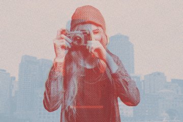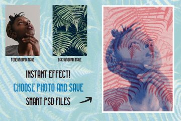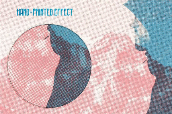 80年代电影单色调丝网印刷双重曝光叠加效果PS笔刷素材 Guerill