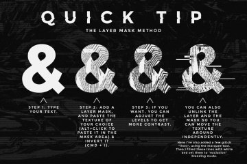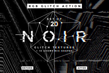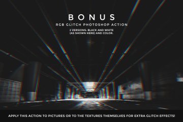 奖金!此套装中还包含一个快速的 Photoshop 操作,用于创建“RGB 故障”效果(彩色和黑白版本)。您可以在纹理本身或图片上使用此操作以获得额外的故障效果。该操作是非破坏性且可编辑的,这意味着原始图层保持原样。