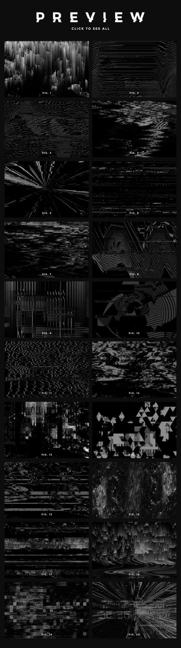 JPG 格式(6000x4000 像素,300 DPI)的 20 个故障纹理/背景集