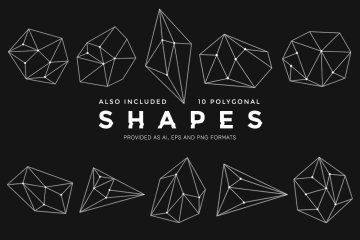 还有一组10 个多边形形状,您可以根据需要将它们与纹理和一些文本组合在一起。形状以 AI、EPS 和 PNG 格式提供。PNG 文件大约 4000 像素大,具有透明背景和 300 DPI 分辨率。