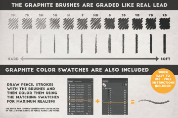 石墨铅笔刷:12 支抗拉伸刷和 12 支短刷——基于真正的铅笔芯等级。