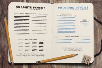 着色铅笔刷:6 支抗拉伸笔刷、2 支短笔刷和 4 支动态笔触。全部来自正品铅笔。