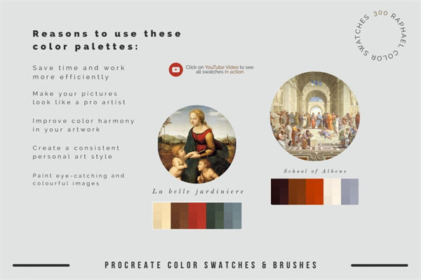 Raphael 的 Art Procreate 画笔和色板专为插画家和平面设计师设计。