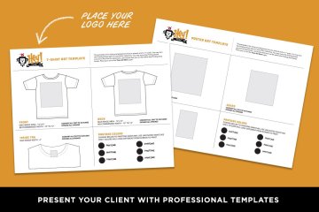 2. 打印就绪模板。使用可打印的衬衫和海报模板为您的客户和打印机提供外观精美的文件。只需替换为您自己的徽标即可。