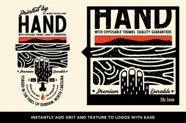 Authentic Screen Printing Toolkit 是一个多合一的打印包,可帮助您在 Illustrator 中添加纹理,并为客户或打印机做好准备,而无需任何额外资源。