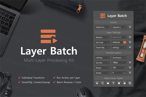 图穷联素材库 » 图层批量添加重命名智能对象图层大小Photoshop扩展插件 Laye