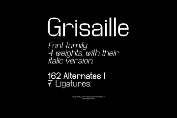 Grisaille 是一个 sans serif 字体系列,由 8 种不同的样式(浅色、常规、中等和粗体,均带有相应的斜体)组成。基于罗马建筑和埃及柱子,Grisaille 拥有强大的方形底座和对比鲜明的圆形美学。