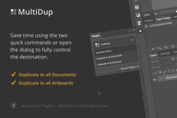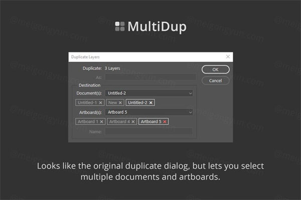 如果您经常将图层从一个文档拖到另一个文档,MultiDup 是让您的生活更轻松的完美插件:与原生复制对话框不同,MultiDup 可以选择多个文档和画板作为目的地。除此之外,对话界面的设计看起来和原来的一模一样,所以大多数人都已经熟悉了。