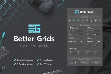 厌倦了手动创建网格布局和画廊?更好的网格将结束这种情况!专业的布局创建面板为您提供原生 Photoshop 不具备的所有可定制性 - 例如设置单个单元格权重或完美的纵横比。调整设置,然后单击将您的网格渲染为形状或框架层。为了进一步加快您的工作流程,有 8 个快捷方式可用于放置常用指南和定位所选图层。一切都在选择内工作,结果像素完美且井井有条。