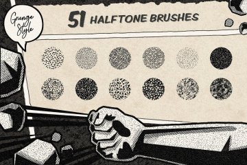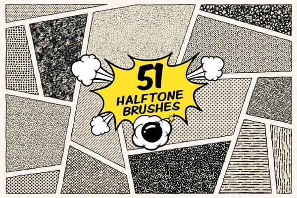 图穷联素材库 » 复古小说漫画半色调网纹网点印刷磨损做旧笔刷 Vintage Comic