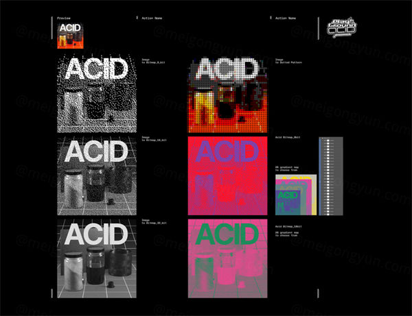 Playground ACID 是一组 30 个 Photoshop 动作,用于设置文本和图像的样式。ACID 的灵感来自 90 年代锐舞文化的外观以及近年来的 Acid Graphic 美学。
