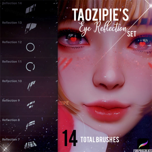 卡通动漫插画二次元美女爱心美瞳反射笔刷 Taozipie - Eye