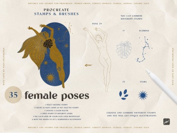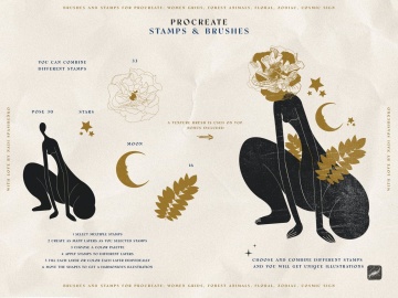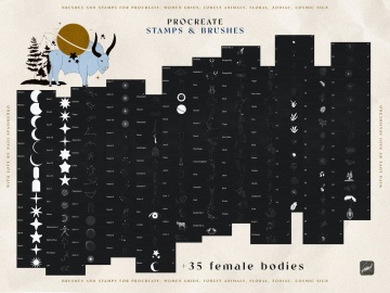 图穷联素材库 » 女性瑜伽曲线柔美姿势抽象线稿动物植物画笔套装 Genuine Myst