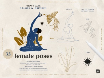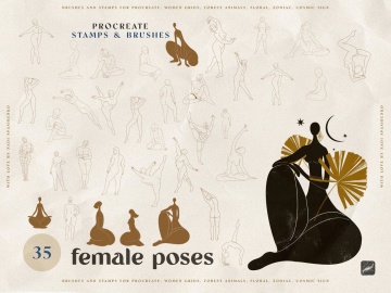 女性瑜伽曲线柔美姿势抽象线稿动物植物画笔套装 Genuine Myst
