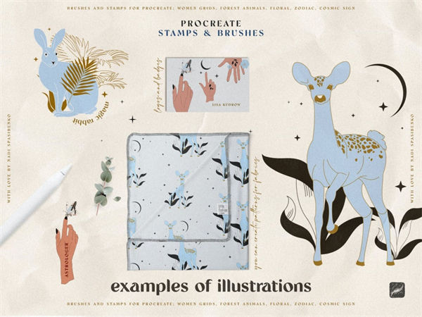 您将获得用于插图创作和奖励纹理画笔的邮票