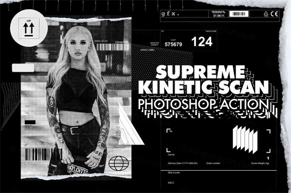 动态排版美学复古做旧垃圾半色调图片效果PS动作 Supreme Kin