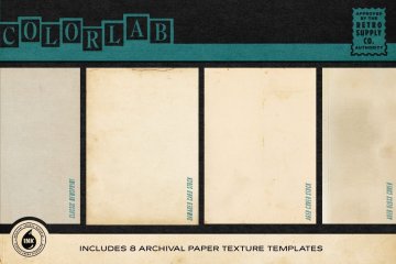 历史纸模板。模拟老式 CMYK 颜色(在旧漫画纸上称为红色、黄色和蓝色)的一个重要秘密是它们与纸张的交互方式。我们策划了 8 个档案纸样本,包括新闻纸、牛皮纸、漫画封面、羊皮纸等。每张纸纹理均由我们收藏的真实历史样本制成。