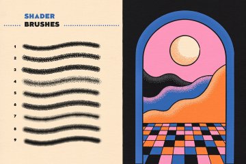 准备好使用27 种 Illustrator 画笔集合来绘制您最怀旧的插图。在他们的帮助下,您可以轻松地为形状添加纹理和情绪,并将常规物体转化为焦点元素,以吸引社区的赞赏。共有 9 种画笔类型,每种画笔都有三种风格:描边画笔、点画画笔和着色器画笔,可将复古折衷主义完美地融入您的插图、海报、徽标、社论、广告等等!