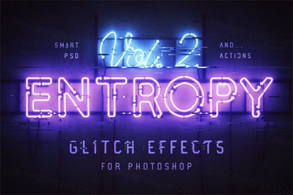 潮流复古未来派赛博朋克故障艺术特效PS动作 Entropy Volum