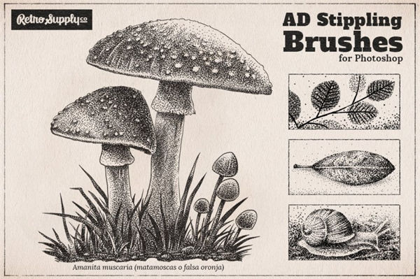 图穷联素材库 » 复古科学教科书半色调噪点插画PS笔刷 AD Stippling Bru