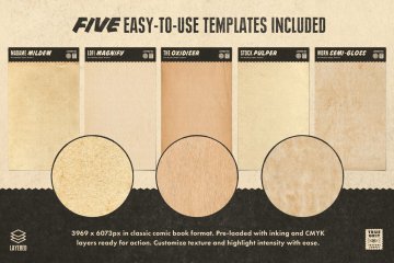 巨大的 374 调色板提供轻微仿旧的点和线屏幕色调。完全控制整个过程,从墨水和纸张纹理到令人痛苦的效果和套准错误。