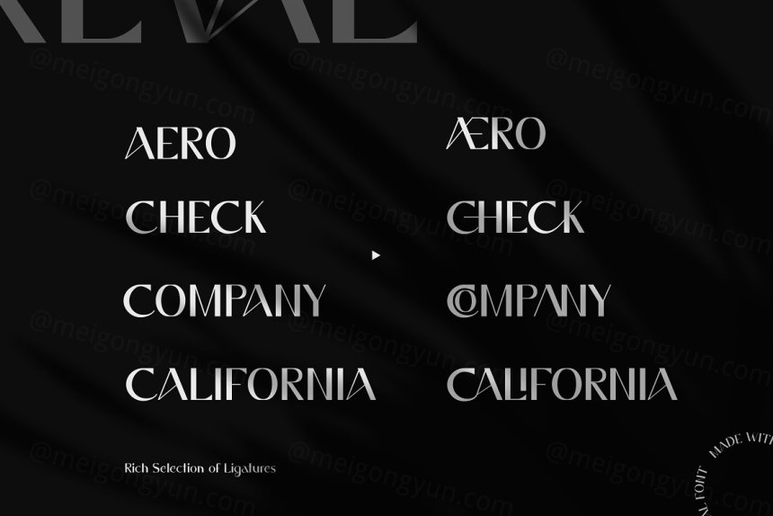 图穷联素材库 » 现代优雅独特婚礼请柬品牌设计英文衬线字体 Reval - Modern Ligature Font