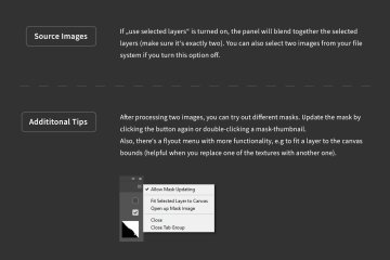 附加提示:处理两个图像后,您可以尝试不同的蒙版。通过再次单击按钮或双击蒙版缩略图来更新蒙版。此外,还有一个具有更多功能的弹出菜单,例如将图层适合画布边界(当您用另一个纹理替换一个纹理时很有帮助)。