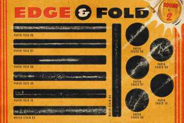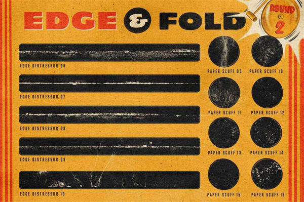 复古做旧艺术颓废折痕磨损折叠污渍砂砾PS笔刷素材 Edge Fold