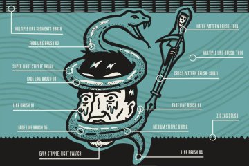 这就是我们创建 The Dead Pen 笔刷包的原因。它是 62 种画笔(图案、散布、线条和色板)的集合,可让您轻松有趣地创作出您自己的线条笔灵感作品。