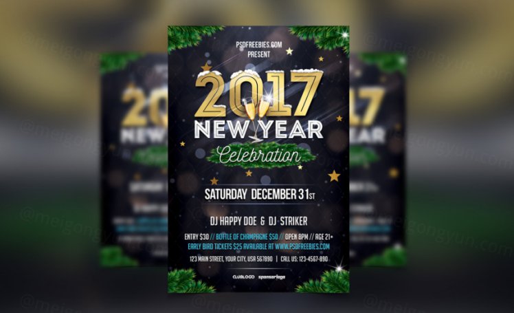 图穷联素材库 » New Year Party Invitation Flyer Template PSD