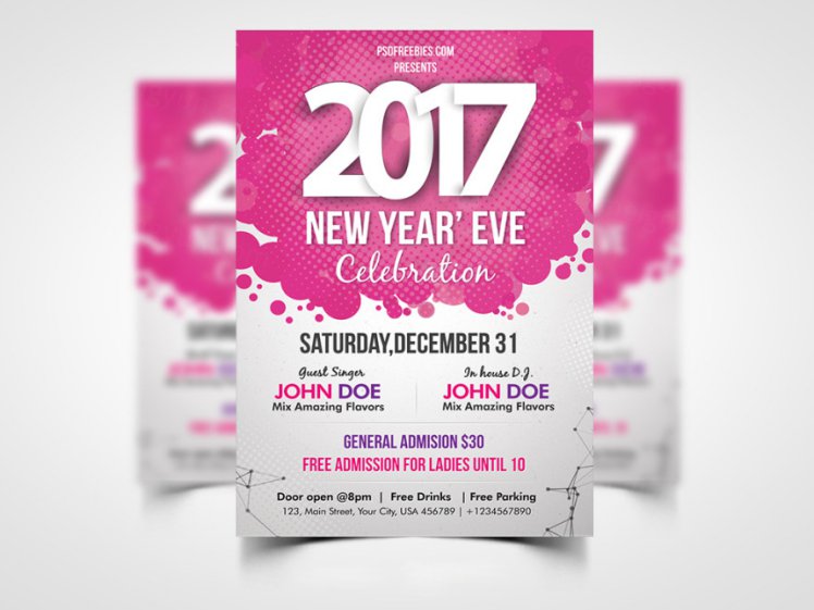 图穷联素材库 » New Year Eve Party Flyer PSD