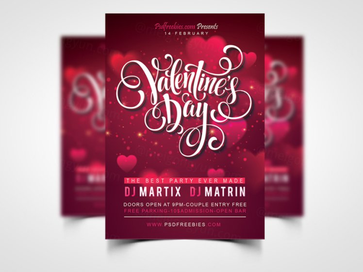 图穷联素材库 » Valentines Party Flyer PSD Template