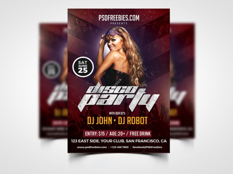图穷联素材库 » Disco Party Poster Flyer Template Free PSD