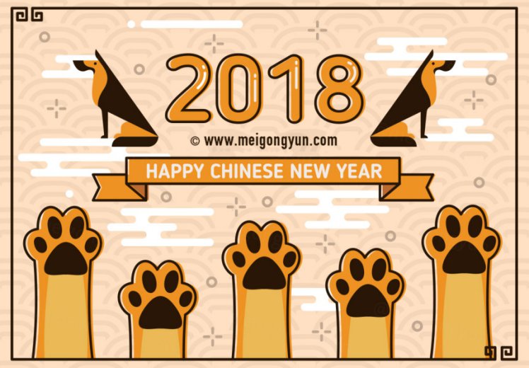 图穷联素材库 » 卡通狗年春节矢量海报 Chinese New Year Of The Dog