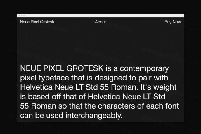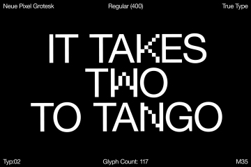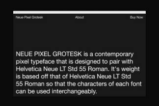 这就是我们创建 Neue Pixel Grotesk 以与 Helvetica Neue LT Std 55 Roman 完美搭配的原因。视觉语言与 Helvetica Neue 的中性形成鲜明对比,但重量是完美的赞美。