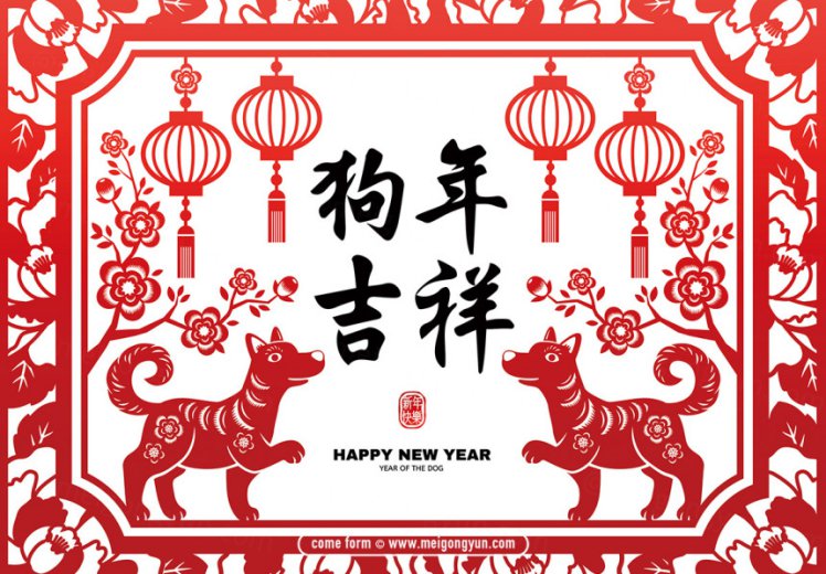 图穷联素材库 » 狗年新春春节Ai矢量海报Happy New Year