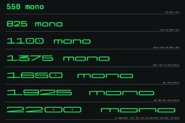 想象一下一个等宽字体,你甚至无法想象它的等宽。那是最单声道。不仅每个字符的宽度都相同,而且没有下行字符。Mostest 是一个字体系列,有七种宽度。它的设计使您的文本行可以通过简单地更改一两个字符的宽度来完美匹配。或者你可以为显示文本而疯狂,让每个字符都有不同的宽度。