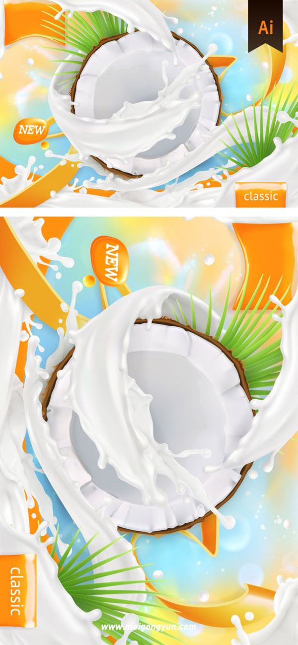 图穷联素材库 » 椰奶矢量宣传海报广告素材