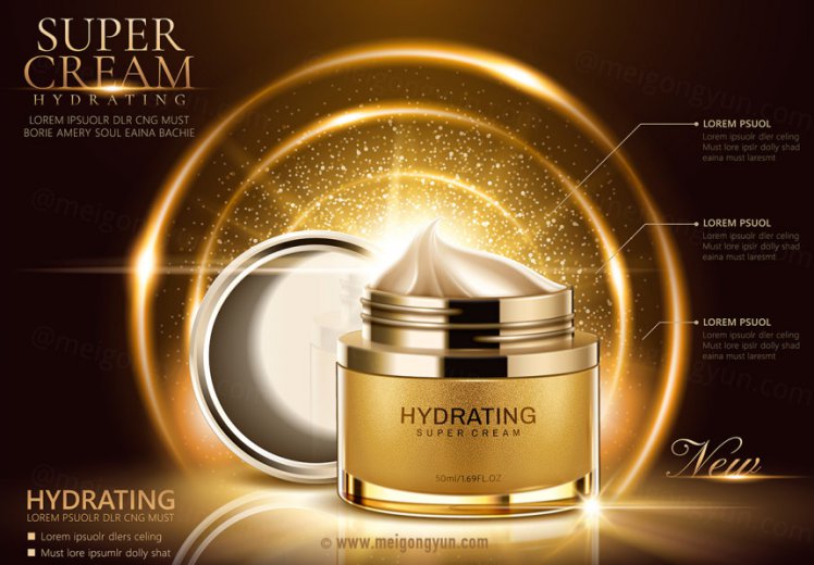 图穷联素材库 » 高端黄金面霜护肤品AI矢量海报模板Cosmetic posters template